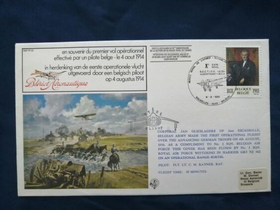 First Belgian operational flight on 4 August 1914 commemorative cover