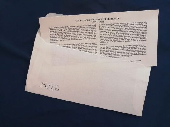 Army Officers Club, Wynberg, Centenary commemorative cover
