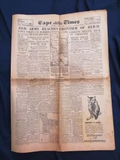 Cape Times newspaper 3 August 1944