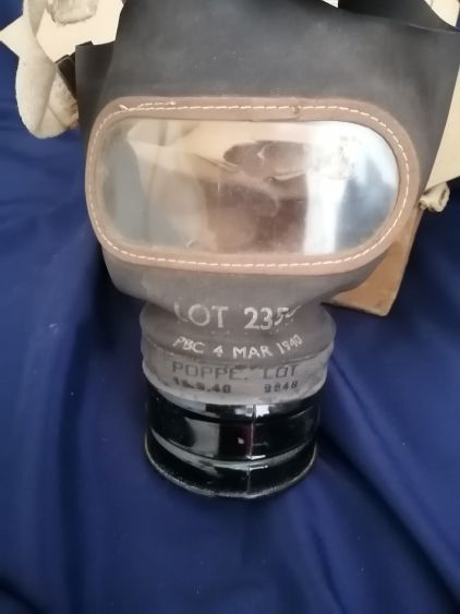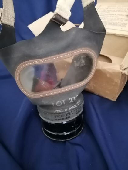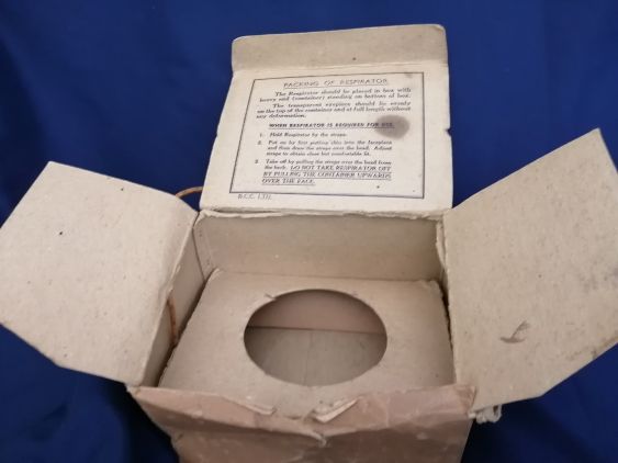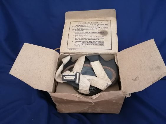 Unused civilian gas mask manufactured in March 1940 by BCC Ltd for UK civilians.