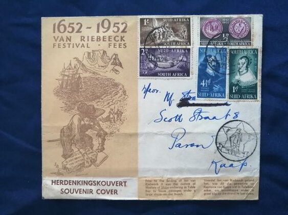 SA envelope celebrating Van Riebeek Festival 1652 – 1952 souvenir cover