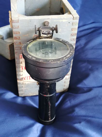 Handheld bearing compass used by SAAF aircrew during maritime operations in World War II and immediate post-war when use of the fixed-type of observer’s compass was impractical.