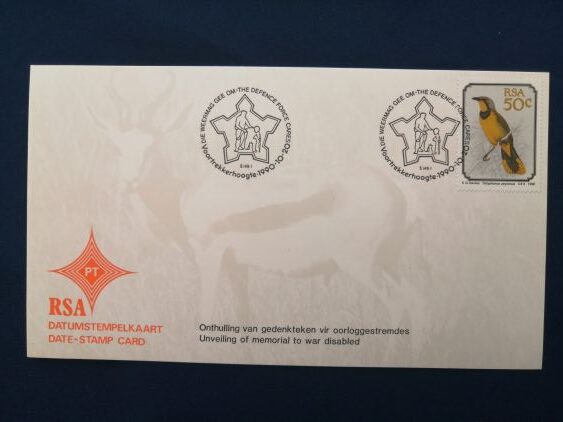 Unveiling of Memorial to War Disabled date stamp card